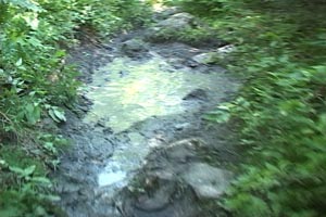 After securing you canoe, you can walk closer to the falls. As is usual with all waterfalls, water spray keeps rock surfaces wet, and mosses and other water plants will grow, keeping the rock surfaces slippery. Use great caution approaching the falls.